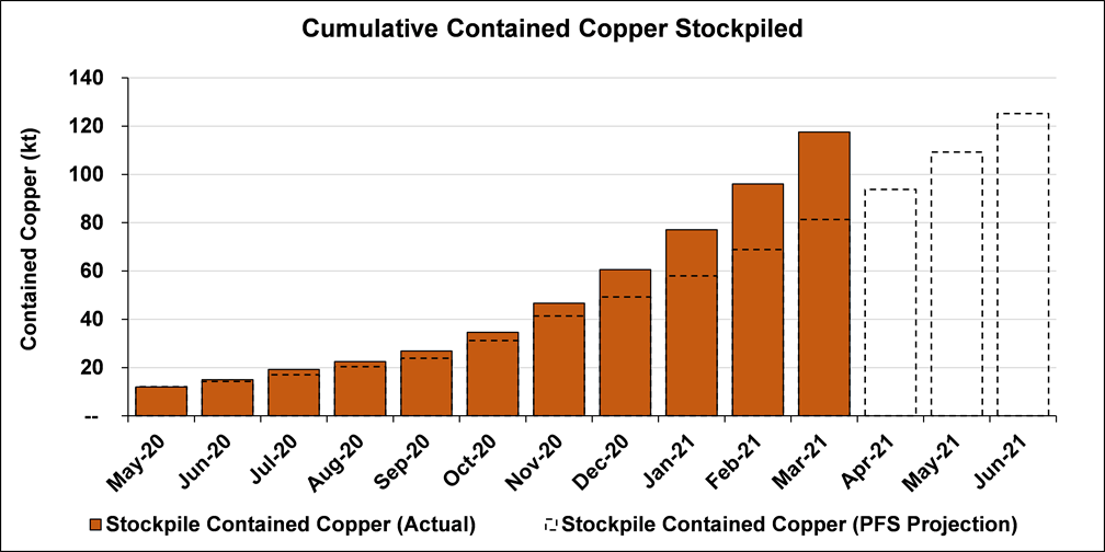 Zijin News, The construction of Kakula¡¯s Phase 1 3.8Mtpa processing plant has completed 90% and is expected to complete by the end of June 2021. Phase 1 processing plant is scheduled to start production in July 2021. The construction of phase 2 3.8Mtpa processing plant has also progressed well. Kamoa-Kakula project has mined 400,000 tonnes of ore grading 5.36% copper in March which brings the total of ores contained by surface stockpiles to 2.56M tonnes with an average grade of 4.6%.